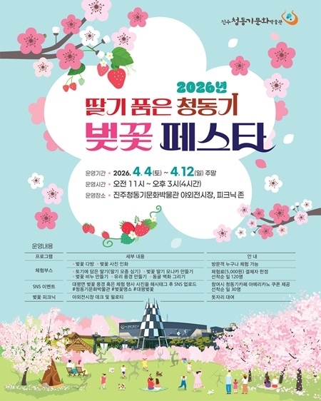 진주청동기문화박물관은 4월 한 달 동안 대평면의 특산품인 딸기를 활용한 체험 프로그램 '브론즈 딸기 뷔페: 두바이 입은 대평 딸기'도 운영 중이다. 참여자들은 딸기의 생육 과정과 수확 방법을 배우고, 직접 딸기 수확과 요리 체험까지 즐기며 지역 특산물의 가치를 자연스럽게 체험할 수 있다. 이번 벚꽃 페스타는 이러한 딸기 체험 프로그램과 봄 테마 행사를 연계해, 박물관만의 차별화된 계절형 콘텐츠를 선보이는 자리이기도 하다.