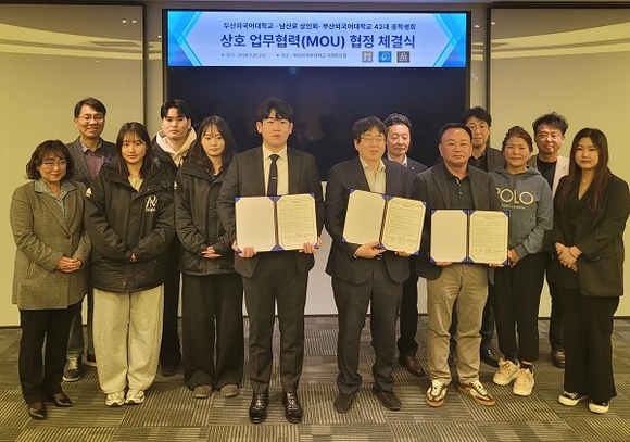 부산외국어대학교는 최근 교내 국제회의실에서 남산로 상인회, 부산외대 총학생회와 함께 지역사회 발전 및 상호 이익 증진을 위한 ‘전략적 업무협력 협약(MOU)’을 체결했다고 6일 밝혔다.