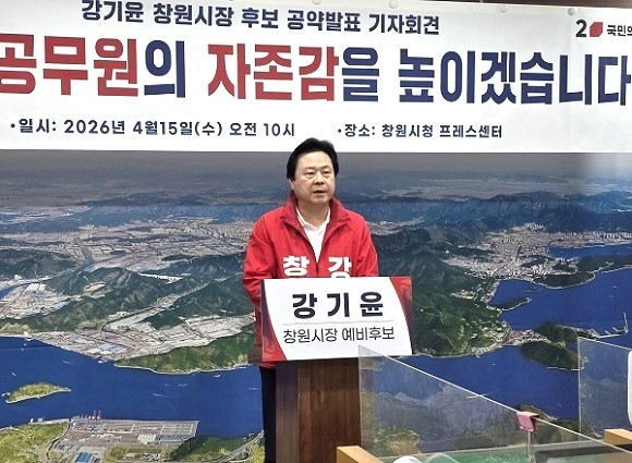 강기윤 국민의힘 창원시장 후보는 15일 "시청 공무원들이 불필요한 관행에서 벗어나 오직 시민만을 바라보며 자긍심을 갖고 일할 수 있도록 공직사회를 혁신하겠다"며 "공무원과 함께 만드는 혁신의 Happy 창원시청을 만들겠다"고 강조했다.
