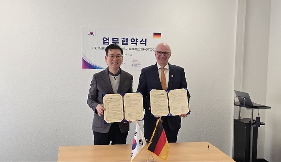 부산TP는 먼저 현지시간 지난 15일 독일 아헨 지역에 위치한 한독기술협력센터(KGTCC), 자브뤼켄 지역에 위치한 한국과학기술연구원 유럽연구소(KIST-Europe)를 잇따라 방문해 지역 기업의 유럽권 진출 지원 협업을 위한 업무협약(MOU)을 체결했다.