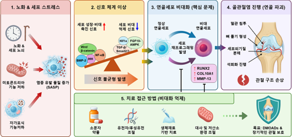 연구팀은 기전 정리에 그치지 않고, 세포의 운명을 재설정(Reprogramming)하거나 특정 신호전달 경로를 조절해 질환의 진행 자체를 늦추는 ‘기전 기반 치료 전략’을 제안했다. 이는 단순히 통증을 완화하는 수준을 넘어, 관절염의 근본적 치료제(DMOAD) 개발을 위한 중요한 이정표가 될 것으로 기대된다.
