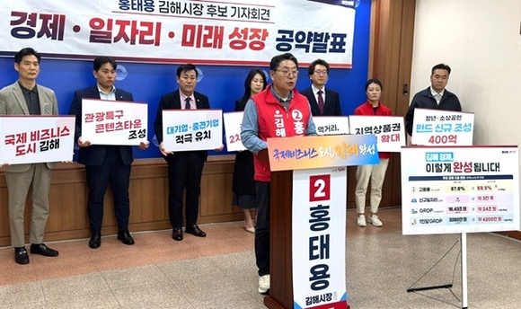 홍태용 국민의힘 김해시장 후보가 김해 경제 회복과 미래 성장 기반 구축을 위한 '7대 경제·일자리·미래성장 공약'을 발표했다.